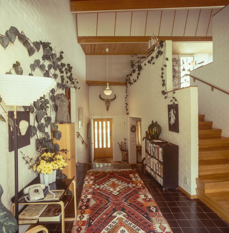 Schildt oli pyytänyt Aaltoa luomaan ”lapsettomalle pariskunnalle sopivan talon, johon ei koskaan eksyisi”. Pienehkössä kodissa kaikki onkin kätevästi näköetäisyydellä.